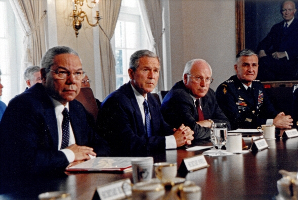 Powell, Bush, Cheney, Shelton - White House Cabinet Room, September 13, 2001